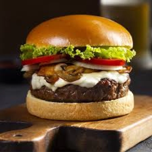 Pão, salada, blend de carne 130g, creme de gorgonzola, bacon, alho frito e barbecue